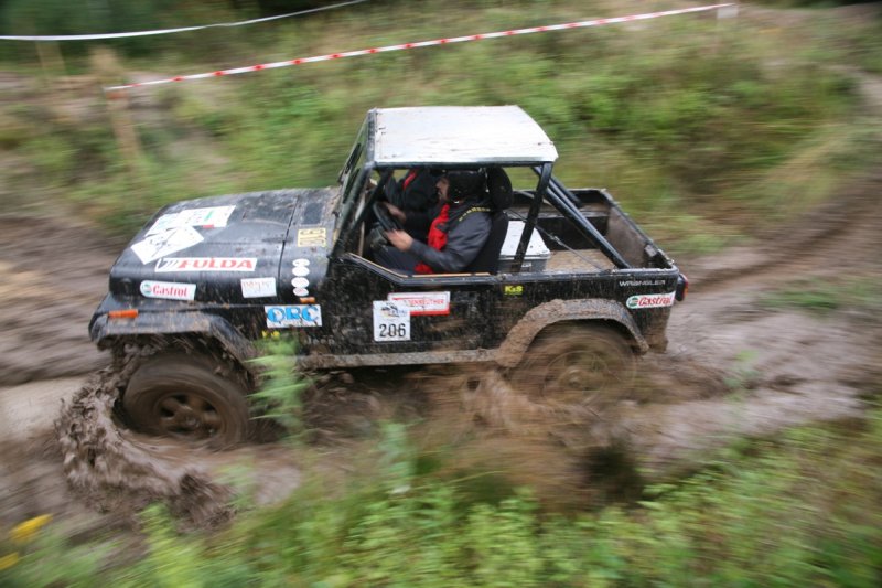 Deutsche Geländewagen Meisterschaft (DGM) 2009 – 5. Lauf in Bramsche09.09.2009 Die zweite Saisonhälfte zur Deutschen Geländewagen Meisterschaft begann beim SCC Bramsche. Trotz schlechter Wetterprognose kamen 74 Starter in den hohen Norden. Das Gelände, das „nur“ aus Sand und Wasser besteht wurde wieder einmal von vielen unterschätzt. Einfache Sandhügel entpuppten sich als perfekte Parkplätze um bequem alle vier Reifen auf einmal wechseln zu können. Durch den Regen wurde der ohnehin weiche Boden noch tiefer, und so manches harmlos aussehende Schlammloch wurde zum undurchfahrbaren Hindernis, und so mancher Allradler lag anschließend auf der Seite. Von Bergeaktionen unberührt setzte der frischgebackene Europameister in der Klasse Standard seine Erfolgsserie fort. Wolfgang und Inge Fröls siegten mit ihrem Jeep YJ souverän vor Henrik Schäfer und Thomas Nest auf einem Jeep CJ5. Den Yetijägern vom ASC Melsungen klebte dagegen das Pech an den Hacken: mit fünf Autos angereist hielt nur der Proto „May way“ von Thomas May alle DGM-Sektionen durch. Und das wurde belohnt: trotz Umfaller in der Sektion 14 wurde er Dritter in der Klasse der Prototypen. Michael Terme und Achim Bindemann wurden jeweils durch einen Vorderachsdefekt aus dem Rennen geworfen.