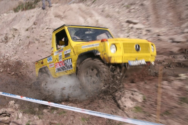 Den Stunt des Tages lieferte Klaus Hofmockel ebenfalls in der Sektion 2. Wo Dominik noch heil die Abfahrt herunterkam, rollte sich Klaus samt überraschtem Beifahrer Wolfgang Fröls um 360° ab. Der gelbe Mercedes G landete wieder auf allen vier Rädern und nach einer Schrecksekunde ging es dann weiter – unter dem Applaus der Zuschauer. Doch nicht lang. Der G war offenbar müde und legte sich wie Dominiks LJ vor dem dritten Tor auf die Seite. Abends im Festzelt wurde Klaus dann immer noch von vielen angesprochen „Hey, du bist doch der mit dem gelben G? Cooler Stunt!“ Wenigstens ein bisschen Anerkennung nach einer Vorstellung mit Panne.