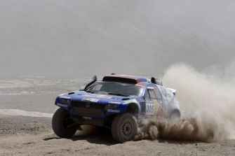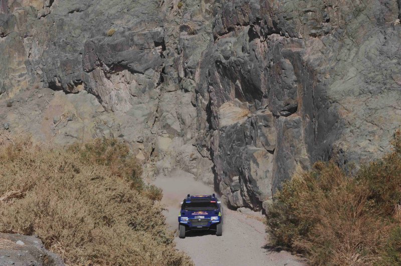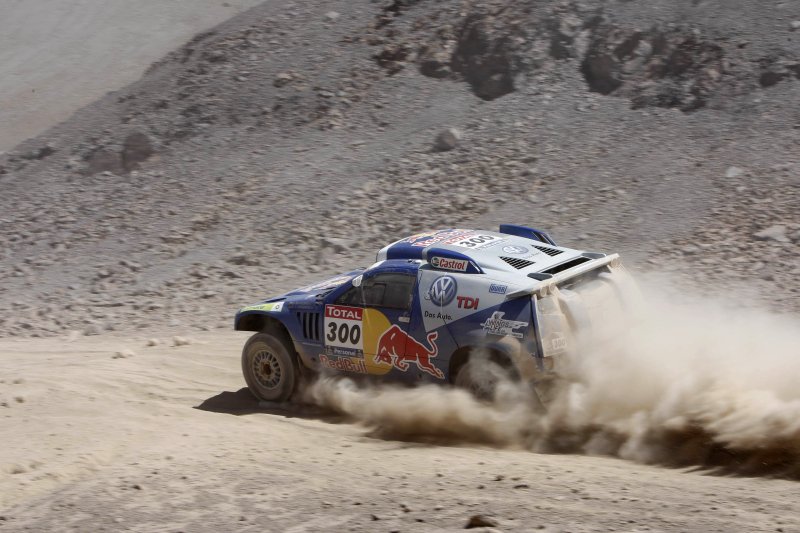 Rallye Dakar 2010, 5. Etappe – VW schlägt zurück06.01.2010 Pech für den bislang Führenden Stéphane Peterhansel: Eine gebrochene Kardanwelle an seinem X-Raid BMW kostet ihn rund zwei Stunden, so dass der Franzose die gestrige fünfte Etappe der Dakar 2010 nur auf dem 33. Platz beendete. Triumph dagegen bei VW: Mit einem Dreifachsieg beendeten die Wolfsburger die 483 Kilometer lange Wertungsprüfung zwischen Copiapo und Antofagasta. Auf der 5. Etappe hat Volkswagen brutal zurück geschlagen: Neben dem Etappensieg durch Mark Miller feiern die Wolfsburger einen Dreifacherfolg bei der fünften Wertungsprüfung und übernehmen mit den Race Touareg im Gesamtklassement die Plätze eins bis drei. Alle zu Beginn der Rallye ausgemachten Konkurrenten liegen bereits deutlich zurück, der Viertplatzierte Robby Gordon hat bereits einen Rückstand von knapp einer Stunde auf den neuen Gesamtführenden Carlos Sainz. . Gleich drei Race Touareg bestimmen nach fünf Tagen das Tempo an der Spitze der Dakar – und zwar sowohl in der Tages- als auch in der Gesamtwertung: Carlos Sainz/Lucas Cruz (E/E) führen den Marathon-Klassiker mit einem Vorsprung von 4.37 Minuten an. Zweite sind ihre Teamkollegen Nasser Al-Attiyah/Timo Gottschalk (Q/D), mit 9.39 Minuten Abstand folgen Mark Miller/Ralph Pitchford (USA/ZA), die ihren ersten Etappensieg bei der Rallye Dakar überhaupt feierten. Somit gab es an den ersten fünf Tagen der eng umkämpften Rallye durch Argentinien und Chile fünf verschiedene Sieger. Auf dem Weg von Copiapo nach Antofagasta, der über Höhenlagen von knapp 3.000 Metern und durch riesige Geröllfelder führte, absolvierten die Teilnehmer die mit 483 Kilometern zweitlängste Prüfung der Rallye. Der Schlüssel zum Erfolg war für die Tagessieger Mark Miller/Ralph Pitchford ihre materialschonende und zugleich konstant schnelle Fahrweise: Das amerikanisch-südafrikanische Duo vermied jegliche Reifenschäden, die angesichts großer und spitzer Steine auf ausgewaschenem Terrain fast unvermeidlich waren.