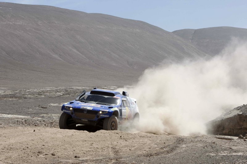 Rallye Dakar 2010, 6. Etappe – Peterhansel wieder auf Erfolgskurs07.01.2010 Stéphane Peterhansel und Jean-Paul Cottret können nach den technischen Problemen am Vortag durch einen Tagessieg auf der sechsten Etappe zwei Plätze gutmachen und stehen mit ihrem X-Raid BMWnach der Stage von Antofagasto nach Iquique nun auf dem achten Platz in der Gesamtwertung. Weiter in Führung die drei VW Race Touareg mit Sainz, El-Attiyah und Miller am Steuer. Nachdem Stéphane Peterhansel gestern aufgrund einer defekten Kardanwelle nur auf den 33. Platz ankam und somit auch die Gesamtführung abgeben musste, durfte er heute als 14. ins Rennen starten und überholte auf der Etappe elf Fahrzeuge. Der Franzose holt sich damit seinen 20. Tagessieg im Auto bei einer Dakar (53. inklusive Motorrad) und den dritten Tagessieg für das hessische X-raid Team bei der diesjährigen Dakar. 53 Etappensiege bei der Dakar, das bedeutet einen neuen Rekord für den Franzosen, der heute den Spanier Carlos Sainz (VW) um 47 Sekunden und den Amerikaner Mark Miller (VW) um knapp neun Minuten distanzierte. Dennoch besteht für die Wolfsburger kein Grund zur Sorge, da drei Race Touareg in der Gesamtwertung immer noch die vorderen drei Plätze belegen. „El Matador“ Sainz führt 15 min 24 sec beziehungsweise. 17 min 47 sec vor seinen Kollegen Mark Miller und Nasser Al-Attiyah (VW).