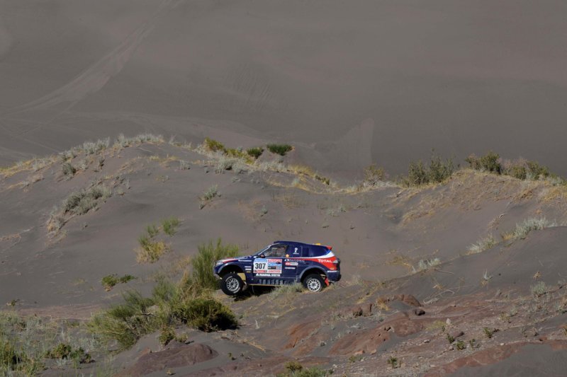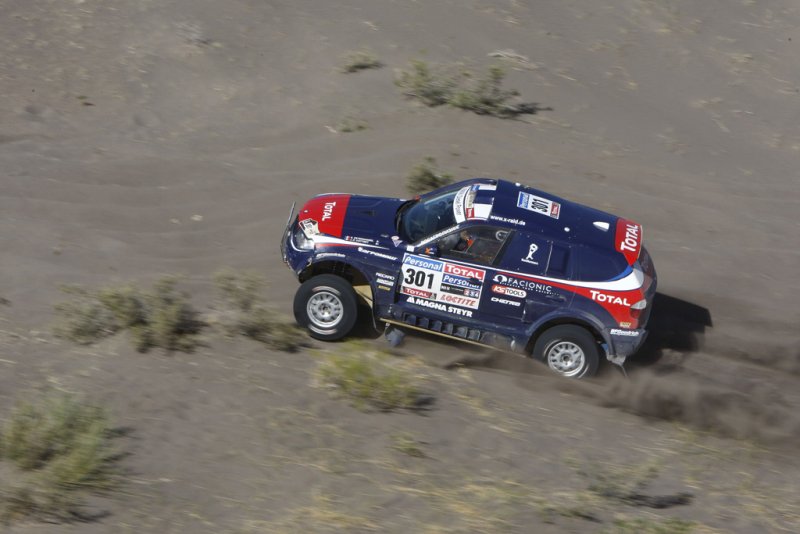 Dakar 2010, 13. Etappe – Spannung bis zum letzten Tag15.01.2010 Auf der 13. und vorletzten Etappe konnten Nasser Al-Attiyah und und Timo Gottschalk im Race Touareg ihren Rückstand auf die im Gesamtklassement führenden Teamkollegen Carlos Sainz/Lucas Cruz auf winzige 2:48 Minuten verringern. Den Tagessieg holten sich Stéphane Peterhansel und Jean-Paul Cottret im X-Raid BMW. Seit Tagen halten die beiden Spitzenpiloten und ihre Beifahrer die Dakar-Fans in Atem: In einer bemerkenswerten Jagd reduzierten Al-Attiyah/Gottschalk ihren Rückstand von 10.06 Minuten (Etappe 10) am folgenden Tag auf 4.28 Minuten (Etappe 11). Dann stieg die Differenz auf 5.20 Minuten (Etappe 12) und beträgt nach der heutigen Prüfung von San Rafael nach Santa Rosa in Argentinien gerade noch 168 Sekunden - es bleibt also bis zum Ziel in Buenos Aires hoch spannend. Den Tagessieg auf der insgesamt 725 Kilometer langen 13. Etappe sicherten sich allerdings Stéphane Peterhansel/Jean-Paul Cottret (F/F) im X-raid-BMW vor Al-Attiyah. Guerlain Chicherit und seine schwedische Beifahrerin Tina Thörner im zweiten X-Raid BMW sind heute als 15. gestartet und konnten die Strecke mit der drittbesten Zeit beenden. Carlso Sainz und Mark Miller (VW) wurden Vierte und Fünfte. Der Russe Leonid Novitskiy (BMW) hat zusammen mit seinem deutschen Beifahrer Andreas Schulz mit einem zwölften Platz heute nochmals seinen elften Rang im Gesamtklassement halten können.