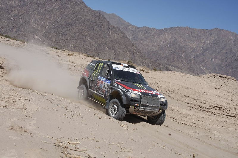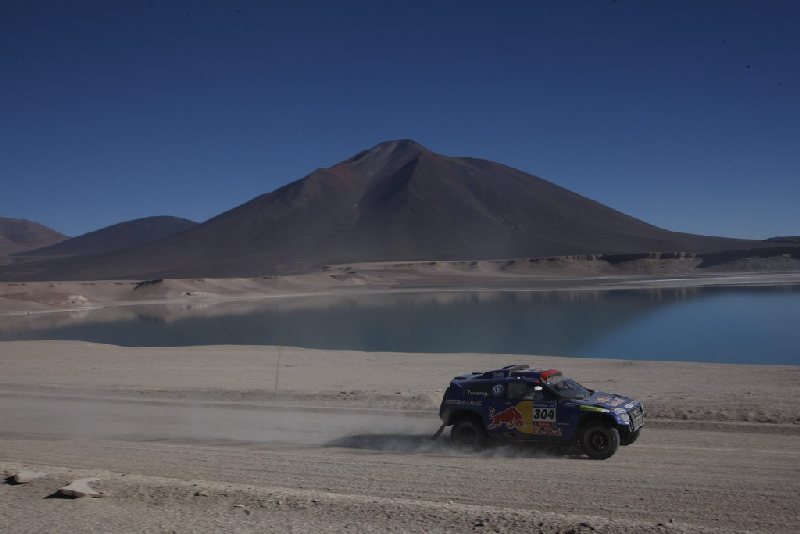 Donnerstag, 13. Januar: Die Rallye Dakar bietet den Teilnehmern auf dem Teilstück zwischen Chilecito und San Juan die letzte vornehmlich vom tiefen, anthrazitfarbenen Sand geprägte Etappe. Weicher Pudersand, im Volksmund „Guadal" genannt und dem Fesh-Fesh Afrikas ähnlich, fordert Mensch und Material ebenso wie steinige und buckelige Abschnitte, die dem Fahrwerk alles abverlangen.