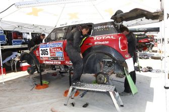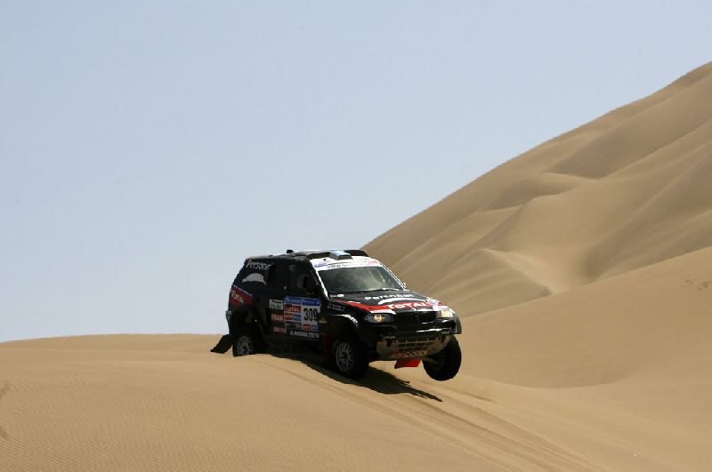 Rallye Dakar 2011 - 7. Etappe – Mit Volldampf in die zweite Hälfte10.01.2011 Nach dem Ruhetag zur Halbzeit der Dakar in Arica hat VW auf der gestrigen Etappe nach Antofogasta seine Führung mit dem Team Carlos Sainz/Lucas Cruz verteidigt. Doch mit einem Tagessieg auf der siebten Etappe in Chile sind ihre Teamkollegen Nasser Al-Attiyah/Timo Gottschalk bis auf 1.22 Minuten in der Gesamtwertung an die Spanier herangerückt. In ihrem Kampf um die Führung haben sich die beiden Race Touareg 3 von ihrem Verfolger Stéphane Peterhansel im X-raid-BMW weiter abgesetzt. Dem hessischen X-raid-Team wird der „Ruhetag“ in Arica noch lange in Erinnerung bleiben. Auf dem neunten Gesamtrang liegend, nutzte Guerlain Chicherit die Pause, um mit seinem „Mini All4 Racing“ eine Probefahrt zu unternehmen – und baute bei dieser Gelegenheit einen dreifachen Überschlag. Woraufhin der tief enttäuschte X-raid Teamdirektor Sven Quandt den Mini ohne Reparaturversuch aus dem Rennen nahm. Nicht viel besser erging es Orlando Terranova und Filipe Palmero in ihrem X-raid BMW X3 auf der gestrigen Etappe: Als siebente der Gesamtwertung gestartet, kämpften sie sich auf den vierten Platz der Tageswertung vor, ehe auch sie ihr Fahrzeug nach dem dritten Kontrollpunkt aufs Dach legten. Orlando Terranova wurde daraufhin per Helikopter ins Camp geflogen.
