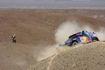Rallye Dakar – Carlos, der Unbezwingbare14.01.2009 Carlos Sainz, der erst seine dritte „Dakar“ bestreitet, hat auf der gestrigen zehnten Etappe seinen sechsten Etappensieg errungen. Volkswagen hat auch auf der extrem anspruchsvollen zehnten Etappe der Rallye Dakar 2009 mit drei Autos in Führung die Oberhand behalten: Carlos Sainz und Michel Périn bauten im Race Touareg ihren Vorsprung in der Gesamtwertung um weitere 7:39 Minuten auf 27:31 Minuten aus. Das Duo erreichte auf der Schleife um Copiapó (Chile), die viel Kamelgras und hohe Dünenfelder mit weichem Sand ebenso enthielt wie steinige Abschnitte, ihren sechsten Etappensieg mit einem knappen Vorsprung. Nach 470 Kilometern durch die Atacama-Wüste trennten das Volkswagen Team ganze 21 Sekunden von Robby Gordon und Andy Grider (USA/USA) im Hummer. Für Sainz, der erst seine dritte „Dakar“ fährt, war es bereits der 15. Etappensieg bei dem Offroad-Klassiker. Das zweite Touareg-Team Mark Miller/Ralph Pitchford (USA/ZA) festigten ihren zweiten Gesamtrang der Rallye trotz eines Reifenschadens mit der drittbesten Zeit im Tagesergebnis. Sie erreichten das Ziel 7:39 Minuten hinter Sainz. Ihre Teamkollegen Giniel de Villiers/Dirk von Zitzewitz (ZA/D) fuhren auf der um etwa 200 Kilometer gegenüber der ursprünglichen Planung gekürzten Schleife – Grund dafür war unter anderen der verspätete Start wegen Nebel am Morgen – die sechstbeste Zeit mit 18:15 Minuten Rückstand. Sie hatten sich 20 Kilometer vor dem Ziel an einer unübersichtlichen Dünenkuppe im tiefen Sand festgefahren. Im Gesamtklassement bleibt das südafrikanisch-deutsche Duo weiter Dritter, liegt nun jedoch 41:13 Minuten hinter der Spitze.