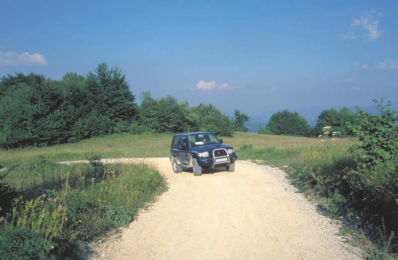 Slowenien - Das vergessene Land - Seite 2Gerade mal 15 Kilometer Luftlinie östlich der unterirdischen Touristenattraktion finden wir im Örtchen Grahovo den Einstieg zu einer unendlich scheinenden Wildnis. Von hier aus erstreckt sich bis hinüber zur Hauptstraße Nummer 6, die Ljubljana in Richtung Süden verlässt eine Mittelgebirgslandschaft, die fast völlig von Teerstraßen verschont geblieben ist. Unser Ziel ist der Berg Slivnica, auf den der Karte nach ein befahrbarer Weg führen muss. Uneinig sind sich aber die Landkarten darüber, ob es auf der anderen Seite auch wieder herunter geht: Mal führt ein Weg weiter nach Cerknica, auf der nächsten Karte ist der Weg als Sackgasse dargestellt. Unsere Neugierde ist damit geweckt, obwohl der Slivnica auf der Karte ein unscheinbarer Berg ist, gerade 1114 Meter hoch. Und trotzdem ist er anders als die meisten der anderen Höhenzüge in der Region, wie sich im Verlauf der Tour herausstellen wird. Der Slivnica ist nämlich einer der wenigen Berge hier, der von seinen Höhenzügen herab den Blick weit in die umliegende Landschaft frei gibt: Grüne Wiesen statt dichter Wälder – die sonst so oft den Blick versperren – ermöglichen hier beeindruckende Fernblicke.