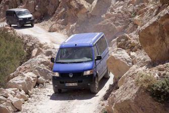 Reise-Fahrbericht: Mit dem Volkswagen T5 4MOTION in Marokko durch Fels und Geröll - Seite 3Heute früh haben wir die Route über Aït Benhaddou Richtung Tizi-n-Tichka in Angriff genommen. Und das über die steilere und gefährlichere Seite, die wohl die Geländetaxis den Touristen nicht zumuten wollen. Die fahren diesen Streckenabschnitt lieber bergab. Deshalb der ständige Gegenverkehr, den wir berücksichtigen müssen. Wir, das ist eine Gruppe von Motorjournalisten, die in Marokko die Möglichkeiten und Grenzen des 4MOTION-Antriebs im T5-Transporter abseits von Straßen und Wegen kennen lernen und ausloten wollen. Organisiert und geleitet wird das Ganze von Volkswagen Experience, einem Event-Unternehmen aus Fulda, das für Volkswagen unter anderem auch die geführten Fahrseminare für VW-Touareg-Besitzer durchführt. Einem Teil ihrer Fährten folgen wir mit unseren T5-Transportern.