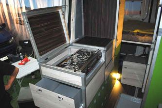 Caravan Salon Düsseldorf 2012 Nachlese: Highlights aus der Allrad- und Outdoor-Ecke / Seite 2Für Freunde geländegängige Camper der Gattung Kastenwagen ist der Name „Terra Camper“ ein Begriff: Martin Hemp hat das bekannte modulare Möbelkonzept für seinen VW T5 „Terock“ (Basis: Rockton), den er im vergangenen Jahr vorgestellt hatte (siehe unserer Meldung), nun für den VW Crafter 4x4 mit dem Achleitner-Allradantrieb adaptiert. In dem „Tecraft“ genannten Modell kommen nun also ebenfalls die bewährten, robusten Aluminium-Module für Kühlbox, Kocher, Spülbecken, Sanitärraum und Stauschränke sowie das „Easy-Use-System“ mit Schienen plus Halterungen im Dachbereich zum Einsatz. Der „Tecraft“-Prototyp wurde just vor dem Caravan-Salon fertig, Preis und mögliche Lieferzeiten sind damit noch in der Pipeline.