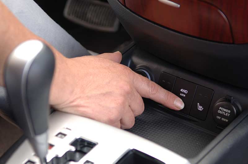 Geht es in schwierigeres Gelände, kann der Fahrer die vor der Hinterachse sitzende Lamellenkupplung über einen weit unten am Mitteltunnel platzierten Schalter auch manuell sperren. Jetzt ist eine starre Verbindung zwischen den beiden Achsen hergestellt – und jede bekommt die Hälfte der Motorkraft zugeführt. Als Sperren-Ersatz dient im Santa Fe die Traktionskontrolle per Bremseneingriff, die Bestandteil des serienmäßigen ESP ist und einen beherzten Tritt aufs Gaspedal erfordert, ehe sie eingreift.