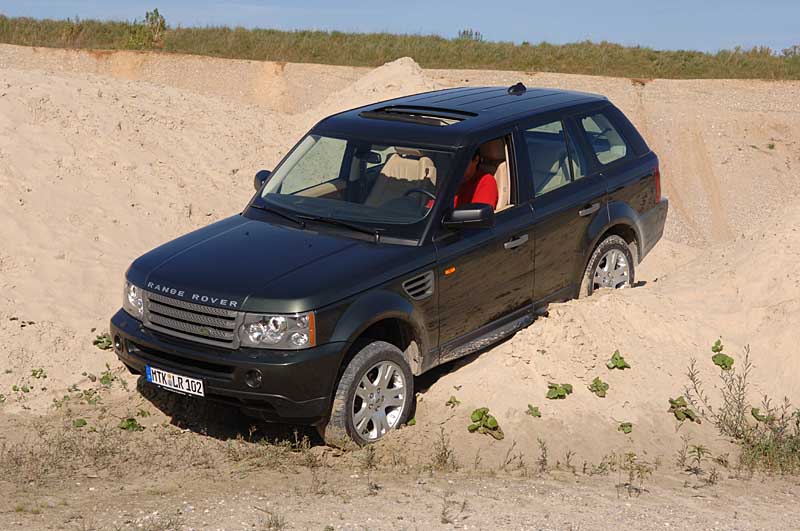 Gentleman und Sportler - Range Rover Sport TDV6 - Seite 4Doch nicht nur auf der Straße kann der Range Rover Sport sein Trümpfe ausspielen, als blaublütiges Familienmitglied derer von Land Rover ist er selbstverständlich auch ein echter Offroader. Seine Antriebskraft verteilt er per Zentraldifferenzial (mit elektronisch gesteuerter Lamellenbremse) permanent und zu gleichen Teilen an beide Achsen und natürlich steht dem Fahrer für besonders knifflige Geländepassagen eine Untersetzung zur Verfügung, die mit 2,93:1 auch noch erfreulich kurz ausgelegt ist. Serienmäßig hat der Range Rover Sport das Terrain Response System an Bord. Über einen Drehschalter auf der Mittelkonsole kann der Fahrer damit zwischen fünf Geländemodi wählen – die Elektronik übernimmt dann die bedarfsgerechte Steuerung aller vortriebsrelevanten Funktionen wie Niveauregulierung, Drehmonentabgabe des Motors, Schaltpunkte der Automatik, Traktionskontrolle und HDC. Man weiß zwar nie so genau, was die Elektronik gerade macht, aber Terrain Response funktioniert in der Praxis überzeugend und so kommt der Range Rover Sport im Gelände weiter als das Gros der anderen SUV. Zumindest so lange die Kuppen und Gräben nicht zu groß werden, denn trotz Luftfederung ist die Bodenfreiheit mit maximal 20 Zentimeter allenfalls durchschnittlich. Dafür überzeugt das Fahrwerk mit einer hervorragenden Achsverschränkung von rund einem Viertelmeter und auch die Wattiefe liegt mit 70 cm deutlich über dem Klassendurchschnitt.