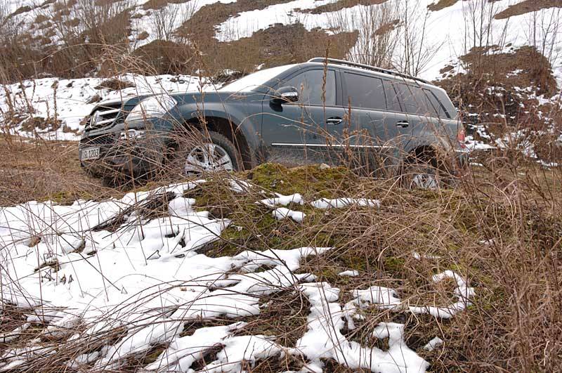 GL - wie Gaaanz Lang - Mercedes GL 320 CDI - Seite 5Im Gelände kommt der GL 320 CDI weiter als man es einem solchen Kaliber von Fahrzeug auf den ersten Blick zutraut. Serienmäßig haben die Mercedes-Mannen dem GL nämlich das komplette Offroad-Pro-Technikpaket implantiert. Dazu gehört zum einen der permanente Allradantrieb mit sperrbarem Zentral- und Hinterachsdifferenzial, zum anderen die mit 2,93:1 sinnvoll kurze Geländeuntersetzung sowie die Vielzahl elektronsicher Helferchen, die heute bei einem modernen Offroader einfach dazu gehören. So macht es keine Mühe, den GL mit Kriechgeschwindigkeit durch die Prärie zu zirkeln. Muss man in einer Steilpassage anhalten, erleichtert eine Berg-Anfahrhilfe das Losfahren, bergab ist man mit der Berg-Abfahrhilfe auf der sicheren Seite - die Geschwindigkeit, mit der der GL zu Tale rollt, lässt sich über den Tempomat-Lenkradhebel im Bereich zwischen vier und 18 km/h vorwählen. Für brauchbare Geländewinkel sorgt das Luftfederfahrwerk, das dem GL darüber hinaus eine Bodenfreiheit von über 30 cm beschert. Doch in der höchsten Gelände-Stellung federt das Fahrwerk kaum mehr, jeder Stein wird spürbar, und damit die Fahrsicherheit nicht unter der Minimal-Federung leidet, ist die maximale Geschwindigkeit nun auf 30 km/h begrenzt.