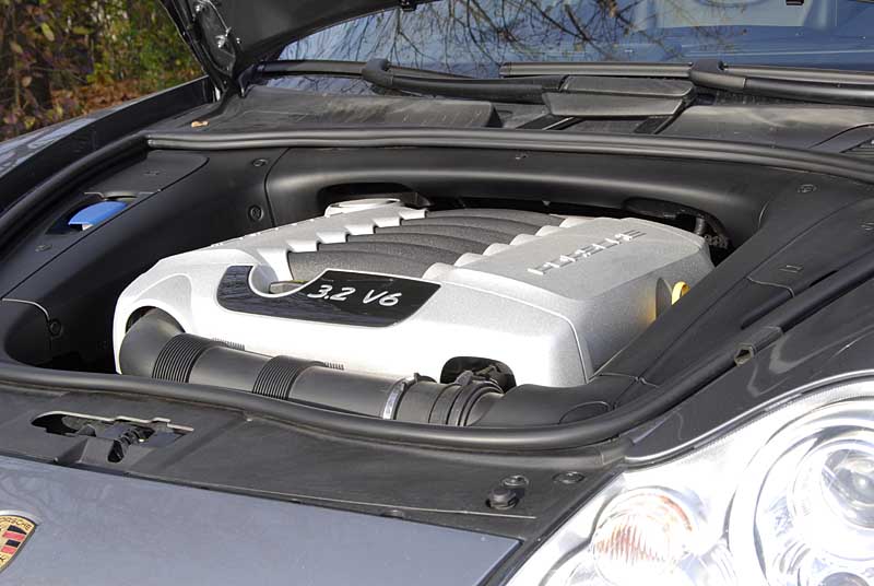 Nesthäkchen - Porsche Cayenne V6 - Seite 221.11.2005 Die Eigenständigkeit des Cayenne-Triebwerks beschränkt sich jedoch nicht auf die Akustik. Vielmehr haben die Porsche-Entwickler dem V6 einen Ansaugtrakt mit Schaltsaugrohr verpasst und ihm eine variable Nockenwellensteuerung spendiert. Als Ergebnis der Feinarbeiten am Motor stehen 250 PS (184 kW) bei 6.000 Touren an, als maximales Drehmoment wuchtet der Cayenne 310 Nm bei 3.200 U/min auf die Kurbelwelle. Und das reicht, um bereits den Basis-Cayenne im Reigen der schnellen Geländewagen und flotten SUV mitspielen zu lassen. An den Fahrleistungen gibt es also nichts zu kritisieren – vor allem, wenn man bedenkt, dass der Porsche knapp 2,4 Tonnen wiegt: In rund zehn Sekunden spurtet er aus dem Stand auf Tempo hundert und erst jenseits von 210 km/h ist Schluss mit dem weiteren Geschwindigkeitszuwachs. Mitverantwortlich für die ansprechenden Fahrleistungen ist das mit knackig kurzen Schaltwegen operierende Sechsgang-Getriebe in Verbindung mit der gegenüber dem Touareg kürzeren Achsübersetzung (4,1:1). So gefällt der Cayenne V6 in den Gängen eins bis vier mit flottem Antritt, erst in den beiden letzten Übersetzungsstufen geht er subjektiv etwas verhaltener zur Sache. Doch die kurze Gesamtübersetzung schlägt sich beim Verbrauch nieder: gut 15 Liter vom teuren Super Plus dürfen es im Schnitt schon sein.