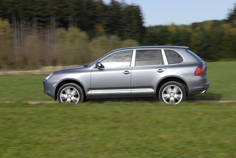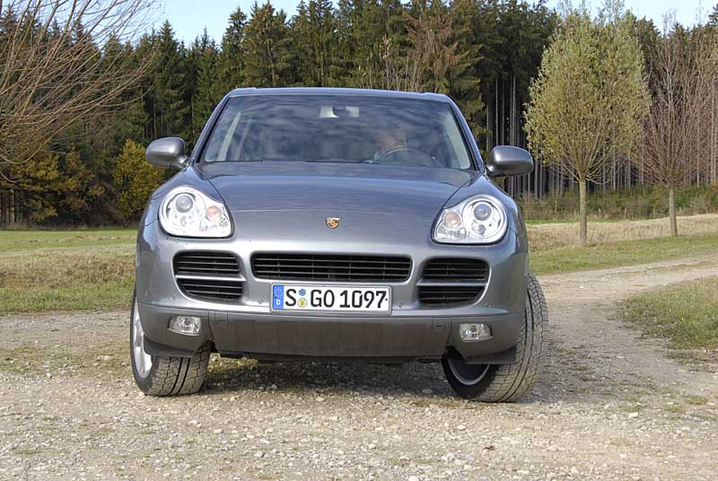 Der flotten Gangart hat sich auch das Cayenne-Fahrwerk verschrieben – speziell dann, wenn es mit der optionalen Luftfederung für knapp 2.900 Euro kombiniert wird. In drei Stufen – von Sport über Normal bis Comfort – lässt sich bei ihm die Dämpfercharakteristik den persönlichen Vorlieben anpassen, wobei selbst in der komfortabelsten Justage keine Gefahr besteht, dass der Porsche zur Sänfte mutieren würde. Mit der zielgenauen und direkt übersetzten Lenkung lässt sich der Cayenne flott durch die Kurven wuchten, unterstützt durch die deutlich heckorientierte Standard-Verteilung der Antriebskraft: Im Normalfall beteiligt das Zentraldifferenzial die Hinterachse mit 62 Prozent am Vortrieb, während nur 38 Prozent der Leistung an die Vorderachse gelangen. Treibt es der Fahrer dann aber doch einmal zu wild, greift die Stabilitätskontrolle (Porsche Stability Management) energisch ein und bremst die Fuhre mit Nachdruck ab. Weniger überzeugen die auf dem Testwagen montierten aufpreispflichtigen 275/40er Breitreifen auf riesigen 20-Zoll-Felgen – laufen sie doch jeder Längsrille stur hinterher.