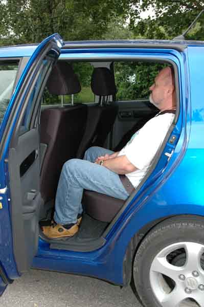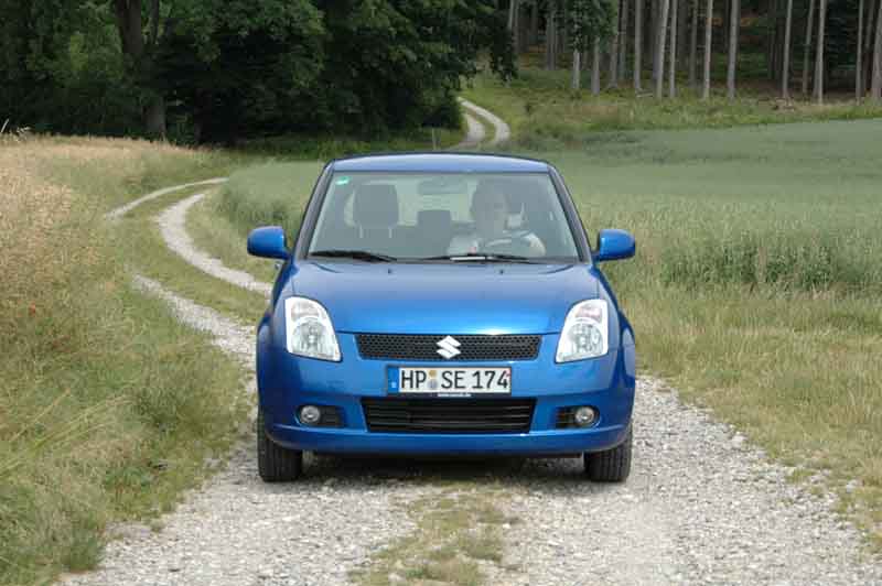 Eine Ausstattung, mit deren Features der Swift-Treiber recht gut fahren und leben kann, beinhaltet sie doch unter anderem elektrisch betätigte Fensterheber und Außenspiegel, eine funkfernbediente Zentralverriegelung, eine Klimaanlage, ein CD-Radio, eine Höhenverstellung für Lenkrad und Fahrersitz, eine im asymmetrischen Verhältnis nach vorne klappbare Rücksitzlehne sowie Popowärmer in den Vordersitzen. Ob sich damit die Sensitivität des gleichnamigen Meters optimieren lässt? Das wäre beim sportlich straffen Fahrwerk des Swift 1300 4x4 eigentlich nicht nötig: Es lässt ohnehin kaum einen Zweifel über den Straßenzustand aufkommen, vermittelt damit sowie dank der direkt und präzise agierenden Lenkung aber auch ein gutes Kurvenfeeling. Dabei bieten übrigens auch die Vordersitze mit den leicht gewölbten Seitenwulsten guten Halt.