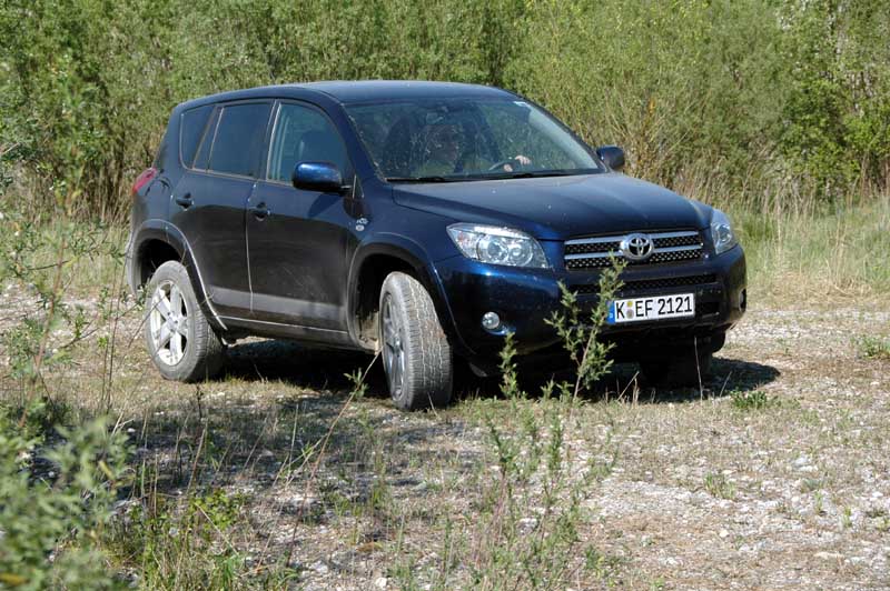 Für leichtere Geländeausflüge kann per Druckknopf am Armaturenbrett die zentrale Lamellenkupplung auch gesperrt werden, doch schaltet der RAV4 selbstständig wieder auf die elektronische Steuerung zurück, sobald 40 km/h überschritten werden. Durch den Verzicht auf ein Reduktionsgetriebe und die gehörige Motorkraft verbieten sich Abstecher in grobes Terrain: Schnell äußert die Kupplung dann ihr Missfallen durch unflätige Geruchsbelästigung…