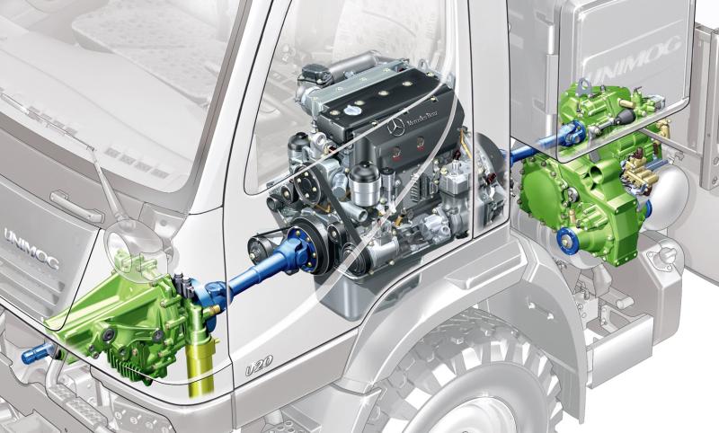 Den Antrieb übernimmt ein direkteinspritzender Vierzylinder-Turbodiesel mit 4,25 Liter Hubraum. Der mit einem Ladeluftkühler ausgerüstete Selbstzünder bringt seine Höchstleistung von 150 PS (110 kW) bereits bei 2.200 U/min und entwickelt ein maximales Drehmoment von 610 Nm zwischen 1.200 und 1.600 Touren. Dank BlueTec-Technologie – bei der eine Harnstoffeinspritzung die Stickoxide im Abgas eliminiert – erfüllt der „OM 904 LA“-Motor die Euro-4-Abgasnorm.