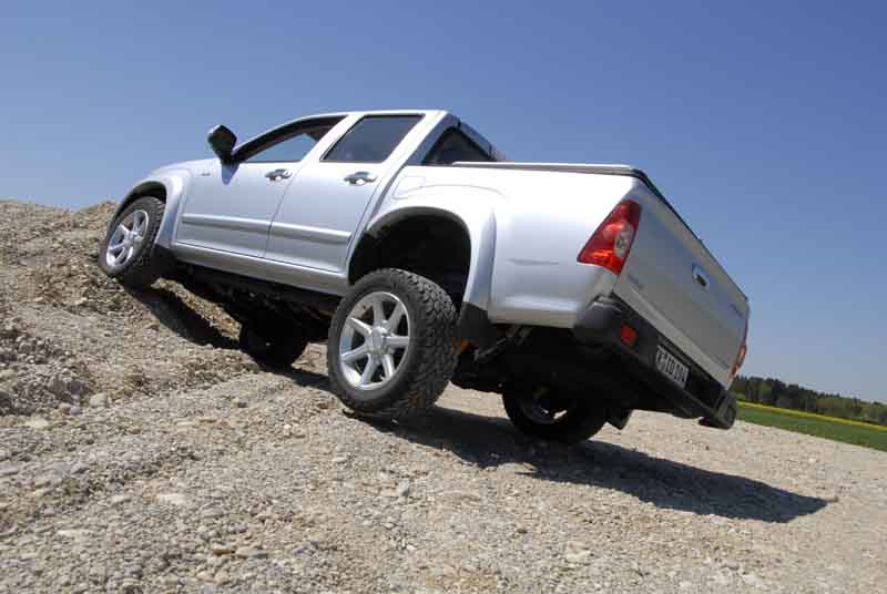 Vergleich Toyota Hilux 3.0 D-4D Double Cab / Isuzu D-Max 3.0 D Double Cab – Kraftprotze mit Multitalent - Seite 6Die gegenüber modernen Geländewagen archaische Hinterachskonstruktion der beiden japanischen Pickups birgt fahrtechnisch Freude und Leid zugleich: Wer das Drehmoment der Dreiliter-Triebwerke geschickt ausnutzt und gefühlvoll mit Gaspedal und Lenkrad umzugehen versteht, wird sich an der vor allem bei regennasser Fahrbahn obsessiven Heckschwenk-Tendenz der Zuschalt-Allradler erfreuen. Ob man Frontantrieb und Untersetzung nun mechanisch per zweitem Schalthebel (im Hilux) oder elektrisch per Drucktasten (D-Max) aktiviert, ist letztlich Geschmackssache. Konventionelle Gemüter mögen da die gute alte Hebel-Lösung bevorzugen. Bleibt zum Schluss die klassische Preisfrage: Ja, der D-Max ist als ausgesprochenes Aller- und Dritte-Welt-Länder-Pickup (der in Thailand produziert wird) preiswerter – selbst wenn man als Hilux-Käufer auf den Chrom-Zierrat der Executive-Ausstattung verzichtet, liegt die Differenz bei 2.081 Euro. Und der Daumen des Ducato-Fahrers bleibt dann garantiert unten.