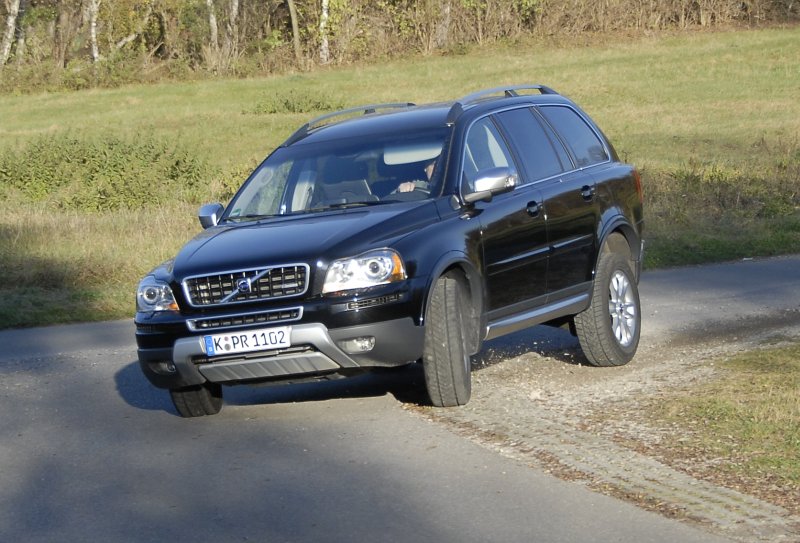 Völlig sicher ist jedenfalls das Fahrverhalten des XC90 in der getesteten „R-Design“-Version, die neben einer Vielzahl an Komfort- und Optik-Features auch eine geschwindigkeitsabhängig arbeitende Servolenkung, dynamische Fahrwerksauslegung und 255/50er Niederquerschnittsreifen auf 19-Zoll-Alus umfasst. Wie auf Schienen läuft der V8 auf der Autobahn geradeaus und umrundet Kurven zwar mit deutlicher Seitenneigung, dafür leidet der Federungskomfort nicht übermäßig unter der sportlicheren Fahrwerksauslegung.