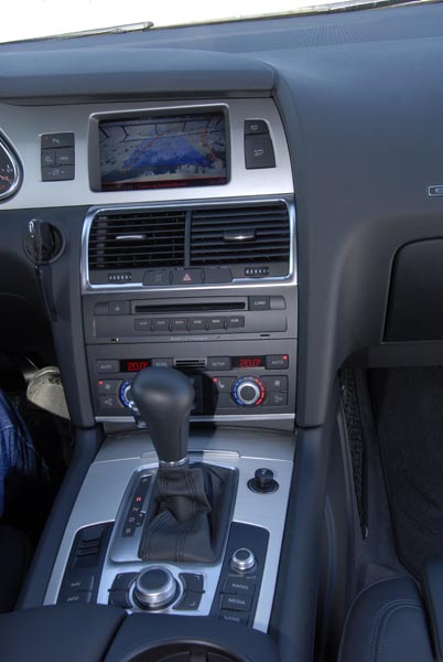 Audi Q7 4,2 TDI quattro – Kraft-Acht für Sieben17.04.2009 Just vor dem ersten Facelift mit gleichzeitiger Kraftkur haben wir noch den „alten“ Q7 mit dem 326 PS-V8 zum Test reinbekommen: Der gemütlich kraftvolle Riese mag sich nun bald auf dem Gebrauchtmarkt als Schnäppchen für all jene Elternpaare empfehlen, die bis zu fünf Zwerge mit einem gepflegten Achtzylinder-Diesel über die sieben Berge befördern wollen... Und denen der Basispreis des neuen Modells das Budget sprengt. Kraftvoll gelassen geht es mit Tempo 180 über die Autobahn. Wir realisieren weder die hohe Geschwindigkeit noch die gelegentlichen Renovierungsversäumnisse der Straßenbaubehörde. Die Landschaft zieht mit musikalischer Untermalung aus der serienmäßigen Bose-Soundanlage wie ein Film an uns vorüber und die Außentemperaturen lassen uns dank der Klimaautomatik kalt. Wir genießen das entspannt komfortable Reisen auf den Ledersitzen in diesem Riesen – dem großen Audi SUV Q7 mit dem durchzugskräftigen V8-Biturbo-Diesel, der sein Drehmoment von stattlichen 760 Newtonmetern aus Vierkommazwo Liter Hubraum schöpft. Ein angenehmes Reisefahrzeug ist er – und genau so muss man dieses über fünf Meter lange und bis zu knapp 3,3 Tonnen schwere Mobil auch sehen: Ein ideales Gefährt für den Einkaufsbummel in deutsche Städte ist der primär zum Gleiten auf US-amerikanischen Highways konzipierte Q7 wahrlich nicht. Dass man ihn dennoch des öfteren erfolgreich in Parklücken urbaner Einkaufsmeilen einrangiert sieht, verdanken dessen Chauffeure/innen dem zuverlässigen Parkassistenzsystem inklusive Rückfahrkamera, das bei einem SUV diesen Ausmaßes zur obligatorischen Ausstattung gehört. Gegen Aufpreis versteht sich, der in diesem Falle mit 870 Euro nicht allzu sehr ins finanzielle Gewicht fällt.