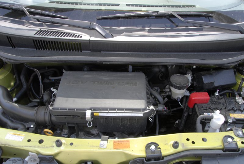Daihatsu Materia 1.5 ECO 4WD – Kantige Knutschkugel / Seite 3In der Allradversion des Materia kommt ausschließlich ein 1,5 Liter großer Benziner zum Einbau. Der Doppelnockenwellen-Motor mit variabler Ventilsteuerung generiert eine Höchstleistung von 103 PS (76 kW) bei 6.000 Touren, als Drehmoment-Bestwert stehen 132 Nm bei 4.000 Kurbelwellenumdrehungen an. Dass der kleine Japaner trotzdem nicht lethargisch wirkt, liegt an der kurzen Gesamtübersetzung seines Fünfgang-Schaltgetriebes – mit dem Nachteil ziemlich hoher Drehzahlen bei Autobahntempo: so steht im höchsten Gang bei 110 Stundenkilometer die Nadel des Drehzahlmessers bereits auf 3.500 U/min. Im Gegenzug können sich die Fahrleistungen des automobilen Flohs durchaus sehen lassen: Knapp 13 Sekunden nach dem Losfahren ist die 100-km/h-Marke passiert, und die Höchstgeschwindigkeit von rund hundertsiebzig reicht bei der heutigen Verkehrsdichte allemal aus. Der Durchschnittsverbrauch hängt beim Materia stark von der Fahrweise ab: Knapp über sieben Liter genehmigte sich der Testwagen bei einigermaßen moderatem Tempo, während er flott abgespulte Autobahnetappen mit einem Spritkonsum von neun Liter auf hundert Kilometer quittierte – eben auch ein Effekt der kurzen Gesamtübersetzung.