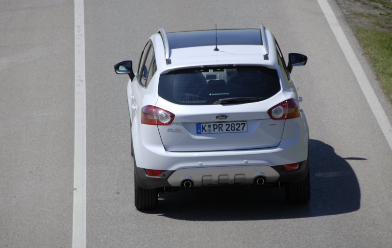 Ford Kuga 2.5T Automatik – Flott und komfortabel23.10.2009 Die Kombination aus einem 200-PS Ottomotor und dem Fünfstufen-Automatikgetriebe macht den Kuga 2.5T Automatik zur sportlich-komfortabelsten Version dieser Baureihe von Ford. Und sein Preis von 30.100 Euro lässt ihn zum nahezu konkurrenzlosen Angebot unter den deutschen Kompakt-SUV werden. Unter der Haube des Kuga 2.5T werkelt ein alter Bekannter: der 2,5 Liter große Ottomotor der Konzernschwester Volvo. Mit und ohne Turboaufladung sorgt der Fünfzylinder bei den Schweden in den verschiedensten Modellreihen – vom C30 bis zum S80 – für standesgemäßen Vortrieb. Als Benziner-Alternative zum 136 PS (100 kW) starken Turbodiesel im Kuga 2.0 TDCi haben sich die Kölner Autobauer für die 200 PS (147 kW) starke Variante des Langhubers entschieden. Und damit eine gute Wahl getroffen. Schließlich steht bei dieser Turbo-Version nicht die Höchstleistung im Vordergrund (es gibt stärkere Varianten des Triebwerks) sondern eine Optimierung des Drehmomentverlaufs. Und der ist beeindruckend: Zwischen 1.600 und 4.000 U/min wuchtet der Fünfzylinder 320 Newtonmeter auf die Kurbelwelle. Das ist der gleiche Wert wie beim Turbodiesel, nur braucht der 2.000 Kurbelwellenumdrehungen, ehe er diesen Drehmomentberg aufbaut.