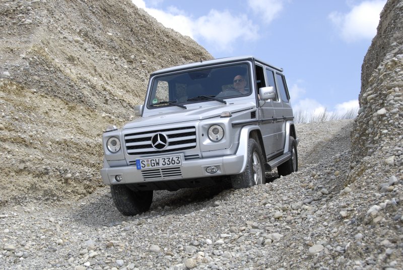 Mercedes G 350 CDI Station lang – Universeller Grenzgänger / Seite 5Vertrauenerweckend massiv ist der Unterfahrschutz unter dem Motor, weniger gefallen dagegen die kleinen Pkw-Außenspiegel im Querformat. Sie schwenken bei Rückwärtsfahrt zwar nach unten in Richtung der hinteren Räder, doch beim Vorwärtsfahren hilft das auch nicht viel, die Spur der Hinterräder bleibt dem Fahrer dann verborgen. Übersichtlich ist dagegen die glattflächige Karosserie des G-Modells ohne seitlich verborgene Anbauten, dafür mit den auf den Kotflügeln montierten Blinkergehäusen, die als Peilstäbe genutzt werden können. Mit seinem Basispreis von 76.700 Euro ist der lange G 350 CDI Station alles andere als ein billiges Vergnügen. Doch für diesen Preis erhält man nicht nur einen der leistungsfähigsten Offroader sondern auch ein geräumiges Alltagsauto mit üppiger Basisausstattung (siehe Tabelle).