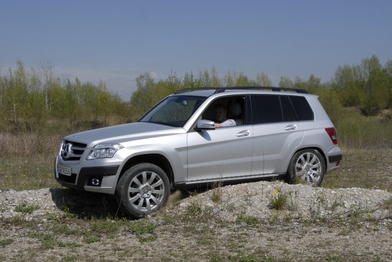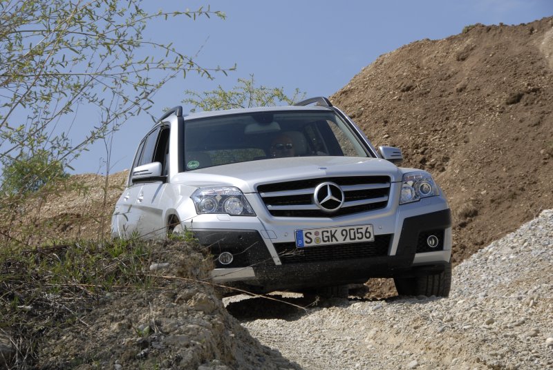 Mercedes GLK 320 CDI/ GLK 350 CDI – SUV mit Offroad-Talent / Seite 4Auf Knopfdruck kann der Fahrer ein für den Geländeeinsatz optimiertes Fahrprogramm aktivieren, das die Schaltpunkte des Automatikgetriebes anpasst, die Gaspedalkennlinie noch weicher abstimmt und die Offroad-Funktionen von ESP und ABS aktiviert. Grundsätzlich erfolgen dann weniger Eingriffe in die Motorregelung, das System lässt zusätzlich höhere Radschlupfwerte zu. In Verbindung mit dem permanenten Allradantrieb mit Zentraldifferenzial und Lamellenbremse kommt der GLK im Gelände weiter als die meisten anderen SUV. Verschränkungspassagen meistert er auch dann noch, wenn die