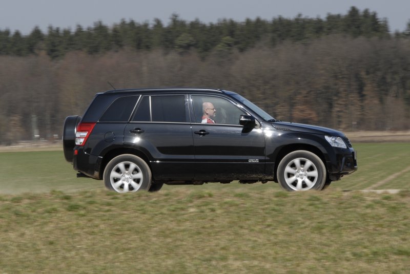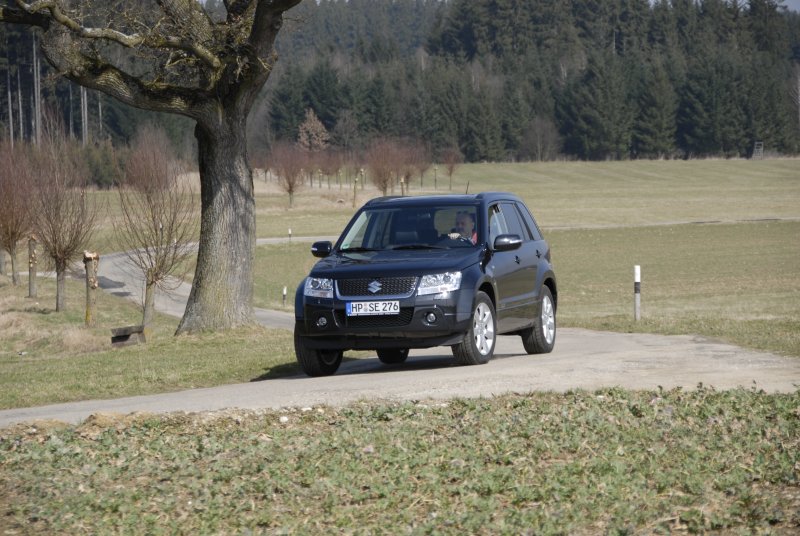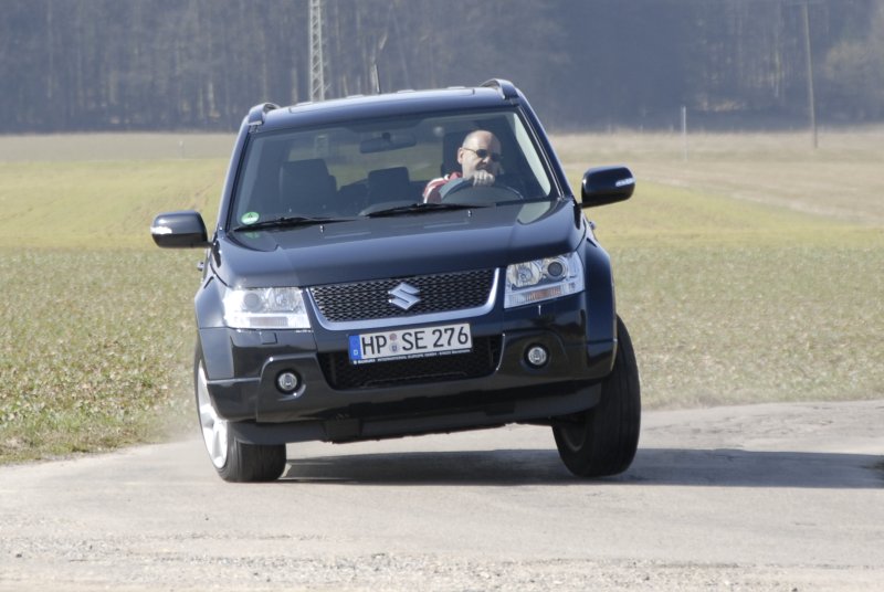 Dabei zeigt sich der Grand Vitara ausgesprochen handlich: Seine Lenkung arbeitet zielgenau und sollte man es einmal zu flott angehen lassen, greift das ESP regelnd ein. Bei flotter Fahrweise überzeugt auch die durchaus von Sportlichkeit geprägte Fahrwerksauslegung, die dem Grand Vitara im Kurven-Grenzbereich ein neutrales, sicheres Fahrverhalten beschert. Bei niedrigen Geschwindigkeiten rollt der Grand Vitara jedoch relativ steif über Querfugen und sonstige Versäumnisse des Straßenbauamtes hinweg.
