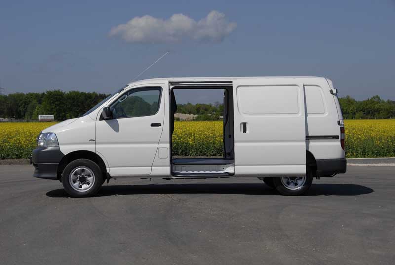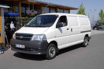 Toyota Hiace D-4D 4x4 Kasten lang - Solides, großes Arbeitstier07.01.2010 Es muss ja nun wirklich nicht immer der Platzhirsch aus Hannover sein: Für einen vergleichsweise fairen Preis von unter 30.000 Euro bekommt man bei Toyota einen soliden Kastenwagen mit einem technisch unkompliziert effizienten Allradantrieb und genügsamen Vierzylinder-Turbodiesel. Und vor allem: In die Hiace-Version mit langem Radstand passt ordentlich was rein. Da steht er nun vor der Haustüre: ganz in weiß wirkt er prächtig und mächtig. Langer Radstand, zwei Schiebetüren, zweiflügelige Hecktüre und verspricht, ordentlich was einzupacken. Der Toyota Hiace D-4D 4x4, Kasten lang. Seine Aufgabe heute und in den kommenden Tagen: Eine 125er ADAC-Junior-Cup-Aprilia samt allem Equipment, Fahrerin und Mechaniker zuverlässig zur Rennstrecke zu speditieren. Und als wäre das nicht genug, darf er ein paar Tage später dann noch eine Palette bodenständige Ladung im Gartencenter aufnehmen. Für beide Aufgaben bietet der lange, kastige Hiace offensichtlich die besten Voraussetzungen: Auf einem