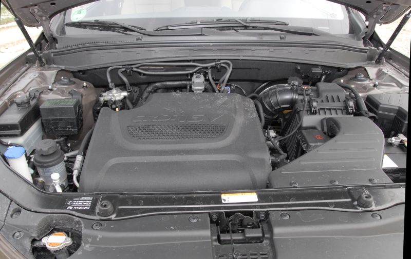 Die wesentlichen Verbesserungen verstecken sich unter dem Blech des Testwagens. Zu allererst in Form des vom Rüsselsheimer Diesel-Kompetenzzentrum der Koreaner entwickelten Common-Rail Triebwerks. Bei einem unveränderten Hubraum von 2,2 Liter leistet der Selbstzünder nun 197 PS (145 kW) statt der ursprünglichen 150 PS bzw. 155 PS – je nach Modelljahr des Vorgängers. Gleichzeitig ist auch der Wert für das maximale Drehmoment deutlich gestiegen: 437 Newtonmeter stehen anno 2010 den 335 Nm des Vorgängermodels gegenüber, das unter der gleichen Bezeichnung Santa Fe 2.2 CRDi 4WD Automatik vor vier Jahren sein Debüt bei uns gefeiert hat.