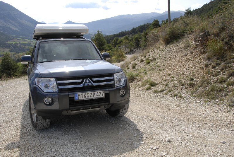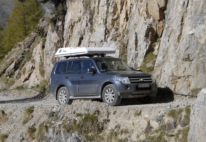 Mitsubishi Pajero 3.2 DI-D Automatik 5türer – Wiedersehen mit einem Urgestein03.05.2010 Seit über einem Vierteljahrhundert bereichert der Pajero nun bereits die Geländewagen-Szene – und obwohl beim aktuellen Modell (V80) kein Teil mehr dem Ur-Pajero (Baureihe L040) entspricht, stellt sich auf großer Tour ein altbekanntes Gefühl ein: Der Pajero ist auch heute noch ein Geländewagen von altem Schrot und Korn. Ein wenig Nostalgie überkommt den nun auch schon etwas gereiften Autor beim Wiedersehen mit dem Pajero: Wie vor mehr als zwei Jahrzehnten, so steht auch mit dem Pajero des Modelljahres 2010 noch ein „richtiger Geländewagen“ vor ihm: Ein knapp 1,9 Meter hohes Trumm von einem Auto, mit Kanten in der Karosserie und steil stehender Hecktür – kein vom Windkanal geglättetes SUV. Der Einstieg in das (bereits im Serien-Trimm) mit 22 Zentimeter Bodenfreiheit gesegnete Auto gleicht einem Entern und die Sitzposition bringt jene Erhabenheit und den souveränen Überblick übers Verkehrsgeschehen, wie es eben nur ein hoch gelegener Kapitänssessel vermittelt. Und dann ragt da im Pajero immer noch dieser zweite Schalthebel aus der Mittelkonsole, der jedem Geländewagen-Fan die entscheidende Antwort gibt: Ja, da ist immer noch ein Reduktionsgetriebe an Bord, so wie es eben im Pajero seit jeher war – und wie es sich nun mal gehört für einen echten Offroader, mit dem man durch dick und dünn fahren will. Dann startet dieser 3,2-Liter-Bulle von Diesel, brennt sich den Schlaf aus jedem seiner nur vier Zylinder und nagelt ein klar verständliches Statement in die Welt hinaus: Hier werkelt ein Arbeitstier, das vor keiner Aufgabe so schnell das Handtuch wirft.