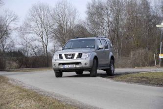 Nissan Pathfinder 2,5 dCi LE – Moderner Klassiker / Seite 3Im Ernstfall, bei Traktionsverlust an den Hinterrädern, erfolgt die Zuschaltung tatsächlich blitzschnell. Auf nasser Straße zuckt das Heck dann nur kurz und leicht beherrschbar aus, bevor sich die Fuhre wieder stabilisiert. Im Gelände zieht's den Pathfinder-Fahrer mehr oder wenige souverän aus dem Schlamassel. Dort hat er ja ebenfalls noch die Chance, per Drehschalter nicht nur die Lamellenkupplung für einen starren Durchtrieb zu sperren, sondern auch die Untersetzung elektrisch zu aktivieren. Im unwegsamen Geläuf punktet die klassische Leiterrahmen-Konstruktion mit Stabilität in der Verwindung sowie einer ordentlichen Bodenfreiheit von 23 Zentimetern und die Verschränkung liegt trotz einer Einzelradaufhängung bei tauglichen 200 Millimetern. Praktische Ergänzung im Fahrbetrieb abseits des Asphalts sind die serienmäßige Bergan- und die