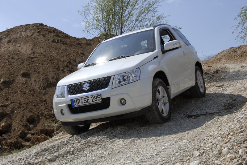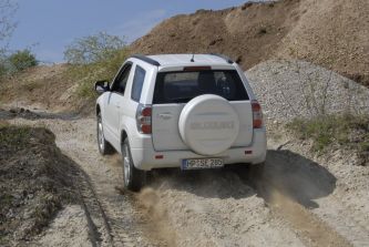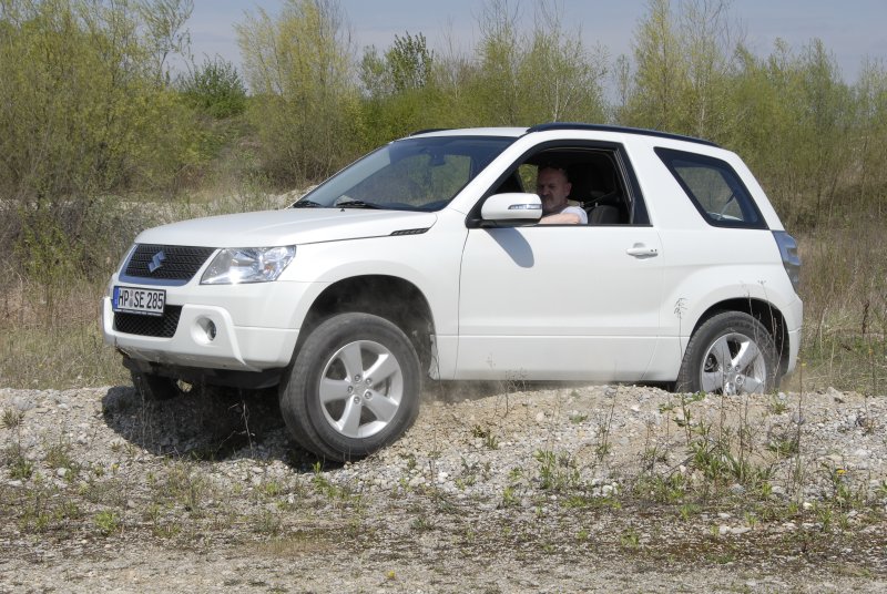 Im Gegenzug sorgen gute Böschungswinkel (vorne: 29°; hinten 36°) sowie der  Rampenwinkel von 20 Grad dafür, dass der kleine Grand Vitara nicht so schnell mit der Karosserie aufsetzt. Die Bodenfreiheit fällt dagegen in Verbindung mit der 225/70 R 16 Serienbereifung nicht gerade üppig aus: 21 cm Luft bleiben unter der Hinterachse und vorne sind es nochmals fünf Millimeter weniger.