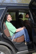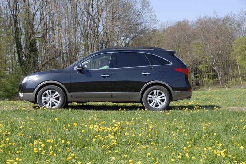 Hyundai iX55 3.0 V6 CRDi – Komfortabler Luxus-Liner / Seite 2Auch in der zweiten Reihe fährt man im iX55 erster Klasse. Die Rücksitzbank lässt sich in Längsrichtung um 13 cm verschieben, was die Beinfreiheit entsprechend großzügig ausfallen lässt. Für ein weiteres Komfort-Plus sorgt die in der Neigung verstellbare Rückenlehne und die separate Klimaregelung für hinten mit Luftausströmern im Dach und in den B-Säulen. Die Lehnen der Rückbank lassen sich geteilt (40:60) umklappen und ergeben so einen ebenen Laderaum, der bis zu den Lehnen der Vordersitze reicht, was rund 195 cm Laderaumlänge entspricht. Im Boden unter der Ladefläche verbirgt sich noch eine dritte Sitzreihe, die den iX55 im Bedarfsfall sogar zum Siebensitzer macht. Den Einstieg nach ganz hinten erleichtert dabei eine Easy-Entry-Funktion an der Rücksitzbank – und wenn diese nicht gerade in ihrer hintersten Position justiert wird, dann ist auch die Beinfreiheit auf den flachen Notsitzen ausreichend. Voll bestuhlt bleibt eine Ladefläche von 33 cm übrig, die aufgrund der schrägen Heckklappe nach oben hin noch weiter abnimmt. Unter dem Ladeboden verbirgt sich ein praktisches Staufach für Kleinkram, das auch bei genutzter dritter Sitzreihe zugänglich ist.