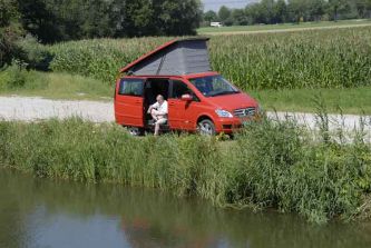 „Der guckt irgendwie so aggressiv…“ lautet der spontane Kommentar unseres mitreisenden Jugendlichen, als er dem neuen Mercedes Viano Campingbus zum ersten Mal in die Scheinwerferaugen sieht. Und irgendwie muss ich ihm da Recht geben, stelle ich nach einem ausführlicheren Zweitblick in das „Gesicht“ des Marco Polo fest: Die breite Kühlermaske und die gezackten Lampeneinfassungen mit den heruntergezogenen „Augenbrauen“ verströmen ein Flair mit „Hey-da-jetzt-komm-ich“-Charakter. Das strahlt keine Boshaftigkeit aus, sondern Selbstbewusstsein. Vermutlich pure Absicht der Designer, die die Frontpartie des seit 2003 gebauten Viano mittels einiger Kanten optisch modernisiert haben. Wesentlich mehr hat sich zum neuen Modelljahr aber im sowie unter dem Blech getan: 1. Die selbsttragende Karosse wurde punktuell versteift, die vorderen Kotflügel sind nun aus Blech statt aus Kunststoff gefertigt. 2. Das Fahrwerk wurde neu gelagert und abgestimmt.  3. Die beiden mit dem Allradantrieb 4matic kombinierbaren Vierzylinder-Dieselmotoren wurden drehmoment- und leistungsgesteigert sowie in den Abgaswerten auf Euro 5 getrimmt – aber das wissen Sie als Stamm-User unseres Magazins bereits aus dem Bericht über die Allrad-Van-Offensive von Mercedes.