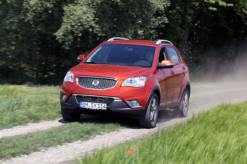 SsangYong Korando D20T AWD – Der Zwillingsdrache kehrt zurück26.05.2011 Mit dem Korando bringt SsangYong (koreanisch für Zwillingsdrache) nun das erste neue Modell seit dem Wiedereinstieg in den deutschen Markt. Mit selbsttragender Karosserie, 4,41 Meter Länge, einem automatischen Allradantrieb und modernem 175-PS-Diesel zielt der Neuzugang exakt in den stark expandierenden Markt der Kompakt-SUV à la Toyota RAV4, BMW X1, VW Tiguan oder Kia Sportage. Vorbei scheinen die Zeiten als sich SsangYong als die Designmarke unter den koreanischen Automobilherstellern verstanden hat und ebenso extravagante wie beim deutschen Kunden erfolglose Allradler – beispielsweise den Actyon – auf den Markt brachte. Modern und bullig wirkt dagegen die von der italienischen Design-Schmiede Giorgetto Giugiaro entworfene Karosserie des neuen Korando – aber eben auch ein wenig durch den Zeitgeschmack weichgespült, ohne Ecken und Kanten. Der Verzicht auf Design-Experimente macht den Korando mehrheitstauglich, auch für die Geschmacks-konservative deutsche SUV-Klientel. Darüber hinaus glänzt der 4,41 Meter lange und 171 cm hohe Korando mit
