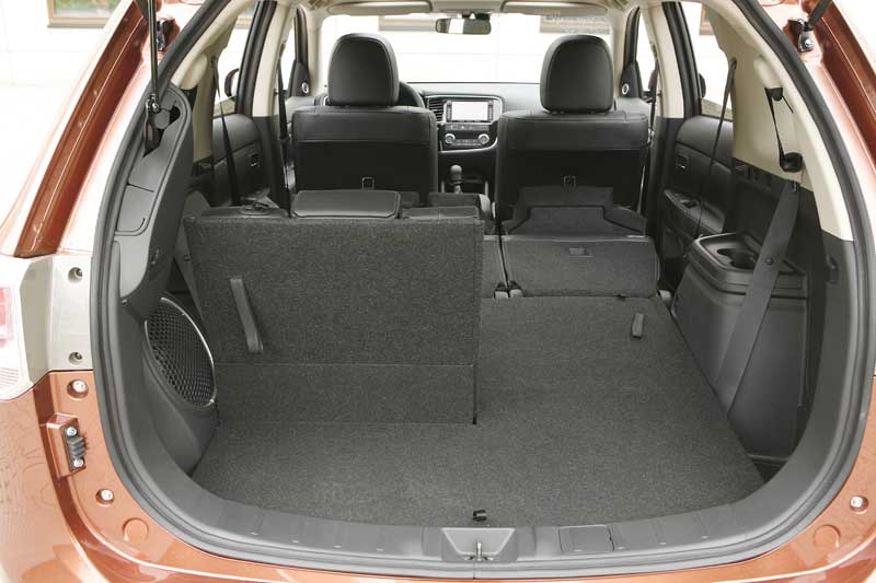 Weitere relevante Eckdaten des Outlander III: Ein um 335 mm längerer Laderaum und 120 mm mehr Breite in der dritten Sitzreihe. Die klappte im Outlander II per Hebelzug  – Sie erinnern sich – automatisch nach vorne um. Im neuen Modell muss man nun wieder selbst Hand anlegen, das spart dem Auto Gewicht und beschert die größere Ladefläche. Die zweite Sitzreihe lässt sich zwecks Beinfreiheit für die hintersten Passagiere in der Länge verschieben – allerdings nur im 7-Sitzer, im 5-Sitzer ist sie unverrückbar installiert, wenngleich ebenfalls umklappbar (im Verhältnis 60:40). Kleine Details erfreuen den Käufer der dritten Generation: Ablagefächer unter der Laderaumabdeckung (17 Liter im 7-Sitzer, 73 Liter im 5-Sitzer) oder eine Heckklappe die elektrisch öffnet und schließt (in der höchsten Ausstattungsstufe Instyle). Die Preisleiter für den neuen Mitsubishi Outlander endet mit  39.890,- Euro, also knapp unterhalb der psychologischen 40.000 Euro-Grenze, für den 2.2 DI-D 4WD Instyle mit einer ziemlich üppigen Ausstattung. Klingt fair, sagt der Bauer – und stapft wieder in den Stall zu seinen Milchkühen.