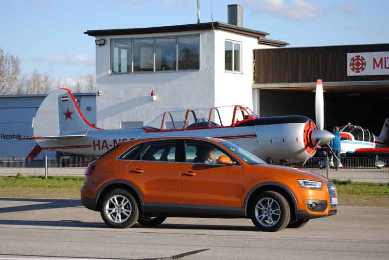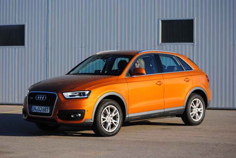 Zunächst mal sticht mir die Optik ins Auge: Blendend sieht sie aus, im wahrsten Wortsinn. Sie sorgt für Aufmerksamkeit, verdreht etlichen Passanten den Kopf. Diese Farbe: Samoaorange-Metallic. Allein damit signalisiert unser Test-Q3 seinen sportlichen Charakter. Ob aber jeder geneigte Betrachter ahnt, was da unter der südseefruchtfarbenen Blechhülle steckt? Akustisch: Ein Diesel. Ein dezenter Selbstzünder zwar, der sich da aus den doppelten Endrohren ökologisch korrekt äußert. Aber einer, der beißt: 380 Newtonmeter ab 1.750 Umdrehungen versprechen Fahrspaß. Das Aggregat stammt aus den Regalen des Volkswagen-Konzerns und findet sich in ähnlicher Ausführung auch im Stiefbruder VW Tiguan. Dort leistet es 125 kW (170 PS). Hier im Audi traben indes sieben Pferde mehr an: 177 PS also, was optisch wie phonetisch mehr Kraft suggeriert als der Kilowatt-Wert von 130 – oder fänden Sie es charmant, wenn wir hier davon erzählen, dass 130 kW „angaloppieren“? Na bitte.