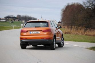Audi Q3 2.0 TDI quattro S-tronic: Sparsamer Sportflieger / Seite 2Besagte gefühlte Lethargie beim Anfahren ist zum einen der nicht ganz reibungsfreien Lamellenkupplung im Getriebeautomat (hier anstelle eines hydraulischen Drehmomentwandlers verbaut) zuzuschreiben, zum anderen Ergebnis der Getriebe-Abstimmung: Das von Audi „S-tronic“ genannte Doppelkupplungs-Konstrukt ist wie der Motor und der Allradantrieb eine Produktion des VW-Mutterkonzerns. Zum Anfahren im ersten der sieben Gänge wurde die Elektronik auf Drehmoment-Reduktion programmiert, um die Antriebskomponenten zu schonen – wohl wissend um die forsche Unbedachtheit so mancher Fahrer im Umgang mit üppiger Leistung. Aber dann: Einmal in Bewegung, entfaltet dieses Q3-Kraftpaket sein der Außenfarbe entsprechendes südländisches Temperament und sprintet anderen Klassenkameraden zügig von dannen. Das Doppelkupplungsgetriebe arbeitet sich im Sportmodus präzise, schnell und weitestgehend ruckfrei, ohne große Drehzahlsprünge durch die sieben Gänge. So lässt sich der Q3 entsprechend agil durch kurviges Geläuf treiben. Für gemütlichere Naturen und zum Cruisen über urbanen oder ländlichen Asphalt sind die sanften Schaltvorgänge im Normalmodus willkommen. Wer das aufpreisige Fahrprogramm „drive select“ geordert hat, darf per Drucktaste zudem drei Programmmodi für die Lenk- und Dämpfercharakteristik aufrufen: bei „comfort“ geht's gemütlich zu, bei „dynamic“ eben sportlich und bei „auto“ regelt das System je nach der Schwere des Gasfußes. Und wir haben's uns nicht leicht gemacht: Mag ja sein, dass lässiges Cruisen im Grundwesen eines SUV liegt. Aber dieser kompakte Audi Q3 2.0 TDI quattro animiert nun mal eher zum permanenten Sprinten. Im Modus „dynamic“ gefällt vor allem auch die zackige Lenkung: Emsiges Kurventreiben macht Spaß, weil die Vorderräder den Richtungsbefehl des Volants spontan und präzise umsetzen. Im schnellen Lauf ganz mühelos den Berg hinauf: Spaß ist der Motor des Lebens.