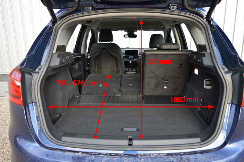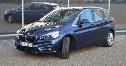 BMW Active Tourer 225i xDrive – Ich bin zwei Autos13.05.2015 Kombi oder Van? Sprint- oder Langstreckenauto? Keins von beiden, sondern ein Mix aus diesen Gattungen, der gemeinhin als „Crossover“ charakterisiert wird. Was uns als Allrad-Fans vor allem dann sinnvoll erscheint, wenn das Fahrzeug entsprechend einen 4x4-Antrieb hat. Insofern ist der BMW 225i xDrive, der just als Testwagen vor der Türe steht, ein echter solcher Crossover. Den der Münchener Hersteller zielführend als „Active Tourer“ bezeichnet. Tatsächlich ein Allrounder? Erst mal Klappe auf und den Laderaum des Hochdachkombis auf sein speditives Talent hin begutachtet: Bei unserem Testwagen öffnet diese elektrisch, was ja vor allem den einkaufstütenbewehrten Familienmenschen gefällt. Kostet allerdings schon mal Aufpreis: 450,00 Euro. Dafür ist die in drei Partien geteilte Rückbanklehne serienmäßig und lässt sich auch so klappen: vierzig-zwanzig-vierzig, so das Teileverhältnis in Prozent. Die reale Zentimeter-Umrechnung ist einfach, weil die nominelle wie nutzbare Breite über 1,10 Meter beträgt. Sprich: In der Mitte gibt's die kombiklassische Durchlademöglichkeit, beispielsweise für zwei Paar Lanlaufski. Die dürfen zwar durchaus über 1,80 m lang sein, spitzen dann allerdings auf der Mittelkonsole zwischen den Vordersitzen hervor. Vom Kofferraumrand bis zum Nackenwulst der geklappten Lehne lassen sich dann links oder rechts bis zu 1,76 Meter lange Dinge einladen. Wobei man bodentechnisch einen Knick in Kauf nehmen muss: Mangels Sitzflächenklappbarkeit lässt sich keine ebene, durchgehende Ladefläche realisieren. Da ist er typisch lifestylig, dieser Tourer – eine formale Aussage, die das Design mit aufsteigender Gürtel- und absteigender Dachlinie ja auch deutlich betonen will: Und so sieht man ihm die fast 1,60 Meter Höhe und 1.510 Liter Stauvolumen auf den ersten Blick nicht an (zum Vergleich: der 3er Kombi ist nur 143 cm hoch, fasst aber lediglich 10 Liter weniger).