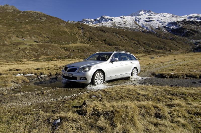 Mercedes-Benz C-Klasse: Neue 4Matic-Generation12.12.2007 In der C-Klasse bringt Mercedes eine neue Generation des Allradantriebs 4Matic. Seine Vorteile: höherer Wirkungsgrad, geringeres Gewicht und kompaktere Bauweise sowie der – je nach Modell – maximal einen halben Liter günstigere Kraftstoffverbrauch. Das Kernstück des neuen Allradsystems in der C-Klasse ist ein Verteilergetriebe mit Zentraldifferenzial, das in die sereinmäßige Siebengang-Automatikgetriebe integriert ist. Von hier aus wird das Antriebsmoment im Verhältnis 45:55 auf Vorder- und Hinterachse verteilt. Durch eine neu entwickelte Lamellenkupplung am Zentraldifferenzial wird die Motorkraft bereits mit einer Grundsperrung von 50 Newtonmetern zwischen Vorder- und Hinterachse übertragen. Wie bisher kombiniert Mercedes den permanenten Allradantrieb serienmäßig mit dem elektronischen Stabilitäts-Programm ESP und dem Traktionssystem 4ETS, das durchdrehende Räder gezielt abbremst und so das Antriebsmoment an den Reifen mit guter Traktion erhöht. Für die 4Matic-Modelle der C-Klasse stehen ausschließlich Sechszylindermotoren zur Wahl. Bei der Limousine sind die Modellvarianten C 280, C 350 und C 320 CDI mit 4Matic lieferbar; das T-Modell kann als C 320 CDI mit 4Matic geordert werden. Mit nur 60 bis 70 Kilogramm (je nach Modell) ist der von Mercedes-Benz entwickelte permanente Allradantrieb das leichteste Antriebssystem dieser Art, wodurch der Kraftstoffverbrauch – je nach Motorversion – um bis zu einen halben Liter je 100 Kilometer sinkt.