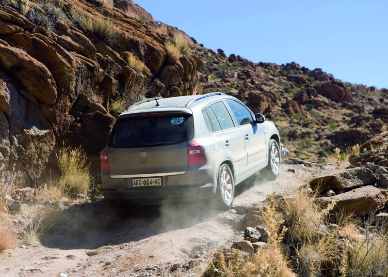 Die Vierlenker-Hinterachse wurde auf den permanenten Allradantrieb 4MOTION abgestimmt, wie er sich in ähnlicher Form mit extrem robust aber gleichzeitig dynamisch ausgelegter Achsgeometrie bereits im Passat 4MOTION bewährt hat. Im Hinblick auf den Offroad-Einsatz kommt im Tiguan jedoch statt eines Hilfsrahmen aus Aluminium ein gänzlich neu entwickeltes und ebenfalls gewichtsoptimiertes Pendant aus hochfesten Stählen zum Einsatz.
