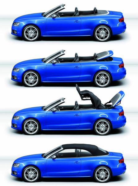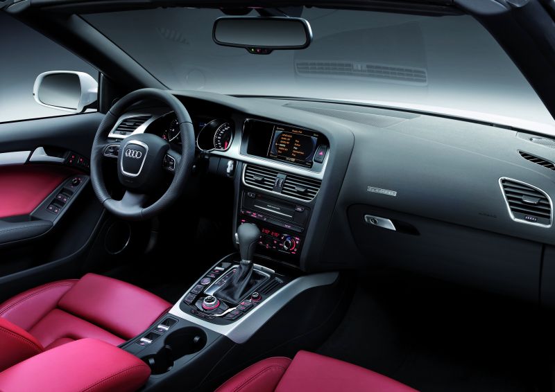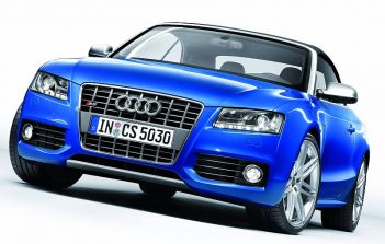 Audi A5/S5 Cabriolet – Kommt im Frühjahr und mit Allrad08.12.2008 Audi bringt ab dem zweiten Quartal 2009 eine Cabrio-Version des A5 zu den Händlern. Vier Motorversionen wird es dann auch mit dem quattro-Allradantrieb geben. Das Topmodell trägt auch beim Cabrio das Kürzel „S“ im Namen. Das S5 Cabrio erhält einen neu entwickelten Dreiliter-V6, den ein mechanischer Lader unter Druck setzt: Der 3.0 TFSI-Benzin-Direkteinspritzer leistet 245 kW (333 PS), sein Drehmoment beträgt zwischen 2.900 und 5.300 Umdrehungen konstant 440 Nm. Das S5 Cabriolet spurtet in 5,6 Sekunden von null auf 100 km/h und weiter auf abgeregelte 250 km/h Topspeed. Im Mittel verbraucht es 9,6 Liter Kraftstoff pro 100 km (Werksangabe/vorläufiger Wert). Das Audi S5 Cabriolet rollt serienmäßig mit einer Siebengang S tronic Getriebe und dem quattro-Antrieb von Band. Als quattro gibt es das A5 Cabrio darüber hinaus auch mit einem 3,2 Liter großen