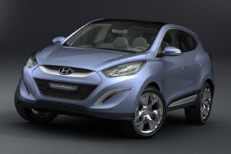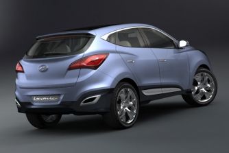 Hyundai-Studie ix-onic – Der Nachfolger des Tucson04.03.2009 Der Hingucker auf dem Hyundai-Messesand in Genf ist die kompakte SUV-Studie ix-onic. Mit modernem Design und neuer Antriebstechnik gibt sie einen ersten Ausblick auf den Tucson-Nachfolger, der im Frühjahr 2010 erscheint. Weltpremiere feiert auf dem Hyundai-Stand derzeit die Studie eines kompakten SUV-Modells mit dem Namen ix-onic. Der Beiname HED-6 (Hyundai European Design) verweist auf die europäische Herkunft des Concept Cars, das vom Hyundai Design-Team in Rüsselsheim gezeichnet worden ist. Das frische Auftreten der kompakten Karosserie (Länge: 4,40 Meter; Breite: 1,85 Meter; Höhe: 1,65 Meter) kombiniert der ix-onic mit wertigen Details wie LED-Tagfahrleuchten, 21-Zoll-Aluminiumrädern oder einer Doppelauspuff-Anlage in Diffusor-Optik. Der ix-onic hat einen 1,6-Liter-Benziner mit Direkteinspritzung und Turboaufladung, der 129 kW (175 PS) mobilisiert. Dank 6-Gang-Doppelkupplungsgetriebe und dem Start-Stopp-System „ISG“ (Idle Stop & Go) glänzt die Studie mit niedrigen Verbrauchswerten und einem CO2-Ausstoß von nur 149 g/km. Automatisch schaltet sich der Allradantrieb zu, der auf der Straße agile Fahreigenschaften ermöglichen und auf unbefestigtem Terrain mit reichlich Traktion aufwarten soll. |