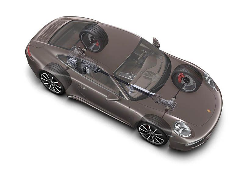 Porsche 911 Carrera 4 – Vier mal mit Allrad05.11.2012 Die Neuauflage des Allrad-Elfer kommt Ende des Jahres in vier Varianten – 911 Carrera 4 und 911 Carrera 4S, jeweils als Coupé und Cabriolet – auf den Markt. Die Preisliste für Deutschland beginnt bei 97.557 Euro für das 911 Carrera 4 Coupé. Der neue Carrera 4 vereint die Performance und Effizienz der aktuellen 911 Carrera-Generation mit den dynamischen Vorteilen der modernsten Version des aktiven Allradantriebes PTM (Porsche Traction Management). Dabei soll die porsche-typische, heckbetonte Auslegung des Allradantriebes ein Höchstmaß an Fahrdynamik bei allen Wetterbedingungen garantieren. Die Allrad-911er bringen die identischen Gene wie die heckgetriebenen Varianten mit: Leichtbau-Karosserie und -Fahrwerk sowie Motoren und Getriebe sind bis auf allradspezifische Änderungen gleich. Das bedeutet, trotz höherer Motor- und Fahrleistungen verbrauchen alle vier Modelle deutlich weniger Kraftstoff als ihre jeweiligen Vorgänger, im Einzelfall summiert sich die Ersparnis auf bis zu 16 Prozent. Zudem ist der neue 911 Carrera 4 um bis zu 65 Kilogramm leichter geworden.