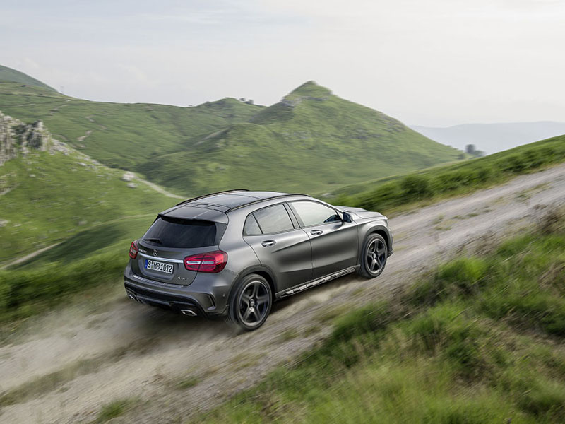 Zu den Komponenten der 4MATIC gehören der in das automatisierte Doppelkupplungsgetriebe 7G-DCT integrierte Abtrieb zur Hinterachse und das Hinterachsgetriebe mit integrierter, elektrohydraulisch gesteuerter Lamellenkupplung. Damit können die Antriebsmomente variabel zwischen Vorder- und Hinterachse verteilt werden. Serienmäßig sind die Bergabfahrhilfe DSR (Downhill Speed Regulation) sowie ein Offroad-Fahrprogramm an Bord. Letzteres optimiert die Getriebeschaltpunkte und die Gaspedalkennlinien für Fahrten durch leichtes Gelände, und auf losem Untergrund.