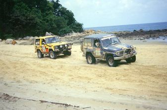 Geländewagen Fahrschule Teil 8 - Fahren auf Sand - Lust oder Frust? - Seite 3Reifenwahl und Luftdruck Besonders wichtig ist es aber generell, vor sandigen Wegstrecken den Luftdruck deutlich abzusenken: Ein voll aufgepumpter Reifen verdrängt den Sand seitlich, schneidet sich so in den Untergrund ein. Bei wenig Reifendruck biegt sich die Reifenflanke nach außen, sodass das Fahrzeug leichter aufschwimmt und über den Sand gleitet. Zwar gilt generell: Je niedriger der Fülldruck, desto größer dieser Effekt – aber vergessen Sie nie, dass ein extrem abgesenkter Luftdruck (unter ein bar) eine enorme Belastung für den Reifen darstellt. Gleichzeitig ist die nach außen gewölbte Reifenflanke Beschädigungen durch scharfkantige Steine oder Dornen besonders stark ausgesetzt. Deshalb wirklich nur im Sand mit extrem abgesenktem Luftdruck fahren – sobald sich der Untergrund ändert, müssen die Pneus sofort wieder aufgepumpt werden, Reifenschäden sind sonst vorprogrammiert. Ein Manometer sowie eine Hand- oder Fußpumpe dürfen deshalb in keinem Wüstenfahrzeug fehlen. Text + Fotos: WortGetriebe