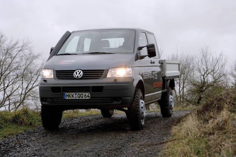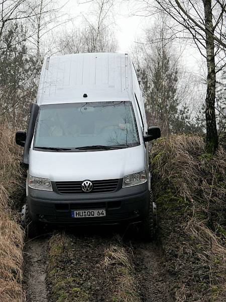 Seikel T5 "extreme" - Bäriger Klettermaxe - Seite 3Bei etlichen Komponenten, unter anderem der Spurstange und den schrägverzahnten Stirnrädern in den Portalen, war eine Neukonstruktion und entsprechende -fertigung erforderlich - so haben letztlich 25 Firmen aus Deutschland, Großbritannien, Österreich und der Schweiz an dem Projekt mit gearbeitet. Nun klettern wir also einmal in einem Multivan mit dem 174 PS starken