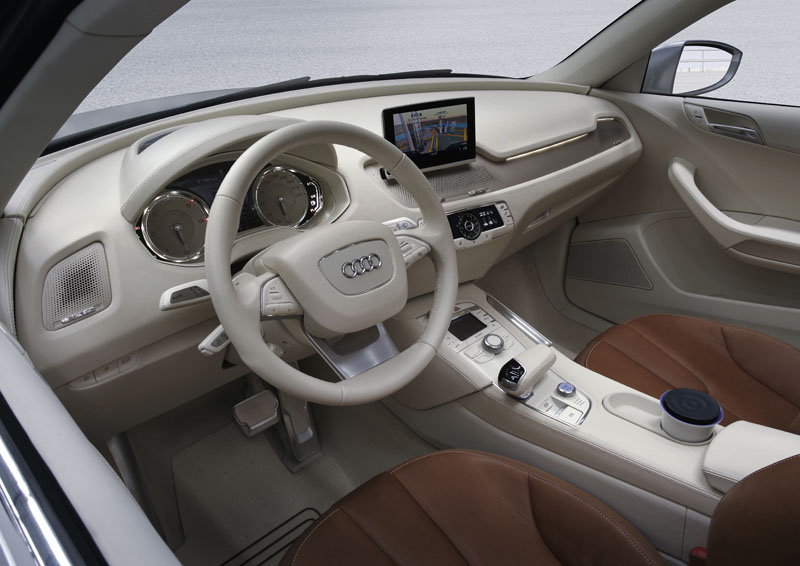 Typisch für einen Audi ist der Cockpit-Bereich deutlich dem Fahrer zugeneigt. Ein weiteres Novum ist die Bedienung über ein berührungsempfindliches Feld (touch pad). Der Monitor des Systems verfügt erstmals über eine Dual View Technologie: Das System kann für Fahrer und Beifahrer unterschiedliche Bilder ausgeben, die nur aus jeweils einer Richtung erkennbar sind. Erstmals gibt es im Audi Cross Coupé quattro auch die Kombination von LED-Fahrlicht und -Abbiegelicht. Dabei sind Linse, Reflektor und Umlenkschaufel in einer Komponente integriert. Auch für das Fernlicht kommt die LED-Technologie zum Einsatz.