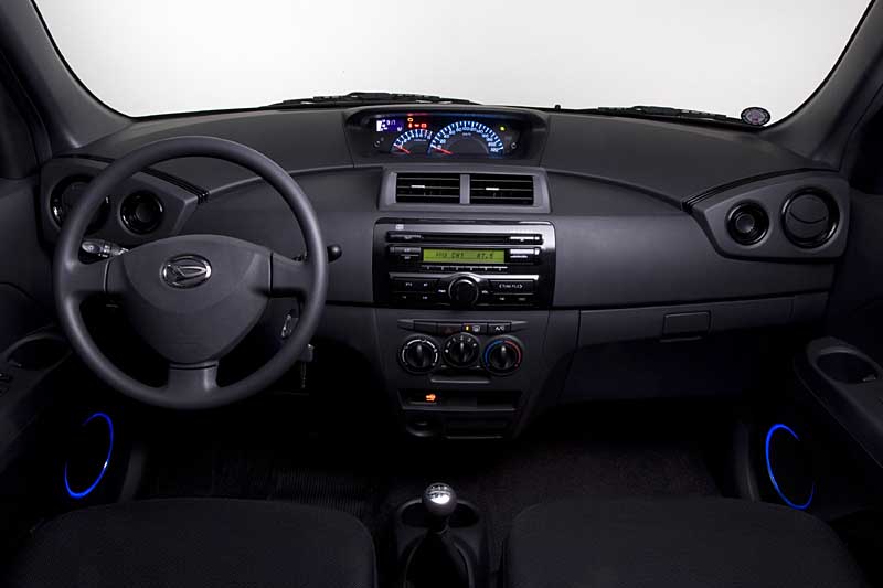 Futuristisch, der Kleine - Daihatsu Materia 1.5 Eco 4WD - Seite 2Wenn die Rücksitzbank in der vordersten Position einrastet, entsteht ein Gepäckraum mit einer Größe von 294 Liter Volumen – gleichzeitig lassen sich die Rücksitzlehnen im Verhältnis 60:40 geteilt umklappen. So entsteht hinter der niedrigen Ladekante ein nahezu ebener Laderaum von 619 Liter bis zur Unterkante der Fenster. Bei dachhoher Beladung steht sogar ein Kubikmeter Platz zur Verfügung. Für den Transport besonders langer Gegenstände kann zusätzlich die Lehne des Beifahrersitzes flach nach hinten geklappt werden. Dies ermöglicht eine Ladelänge von bis zu 2,2 Meter. Das Interieur des Daihatsu Materia wird geprägt von futuristischem Design. Wie eine Kommandozentrale präsentiert sich die geschwungene Armaturentafel. Einen besonderen Akzent setzt der Tachometer mit integriertem Drehzahlmesser, der sich in der Mitte des Armaturenbretts befindet. Die in futuristischem Blau illuminierten analogen Acryl-Anzeigen werden mit digitaler Tankanzeige und Kilometerzähler kombiniert, und auch die Türgriffe und Lautsprecher sind nachts blau beleuchtet.