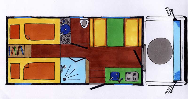 Wohnaufbau: Dach und Wände: GfK-Sandwichbauweise mit 49 mm Isolierung aus PU-Schaum, Boden: 3-mm Unterboden, 49 mm Isolierung aus PU-Schaum und 12-mm Multiplex-Innenboden mit PVC-Belag, Einstieg innen liegend plus zwei Außenstufen, Einstiegtür und Klappen aus Wandmaterial, Fenster doppelt verglast, Sicherheitsschlösser mit Einschlüsselsystem, Durchstieg zum Fahrerhaus 850 x 60 cm mit verschließbarer Tür, Faltenbalg außen, zwei  Unterflurstaukästen, Reserveradträger unterm Rahmenende, Astabweiser über Kabine, Dachträger mit Reserverreifen auf dem Fahrerhaus,  Befestigung der Kabine auf dem Chassis durch  Zwischenrahmen mit 4-Punkt-Lagerung